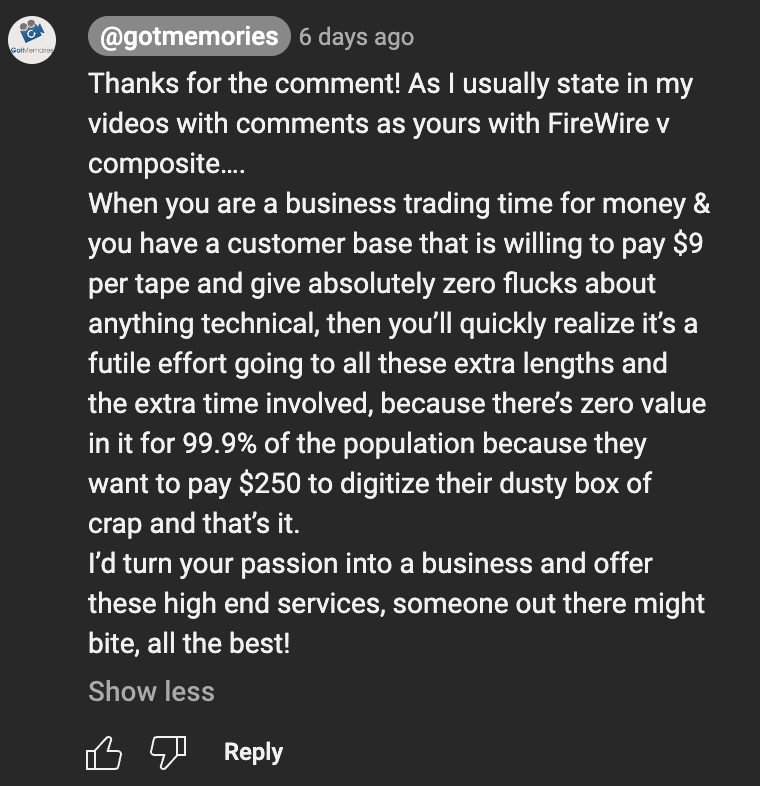 Here’s a tape I was able to transfer that basic home capture wouldn’t be able to.